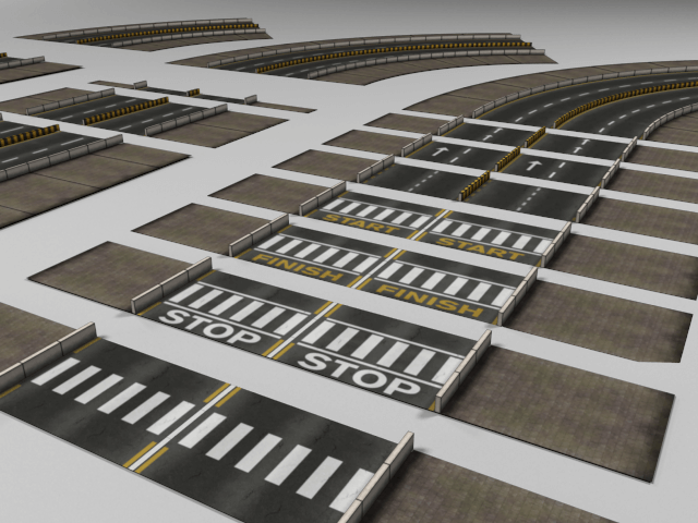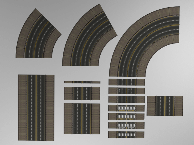 3D roads elements , assemble to create various tracks of various shapes , best suited for racing games , building city, roads are highly optimized for mobile games.